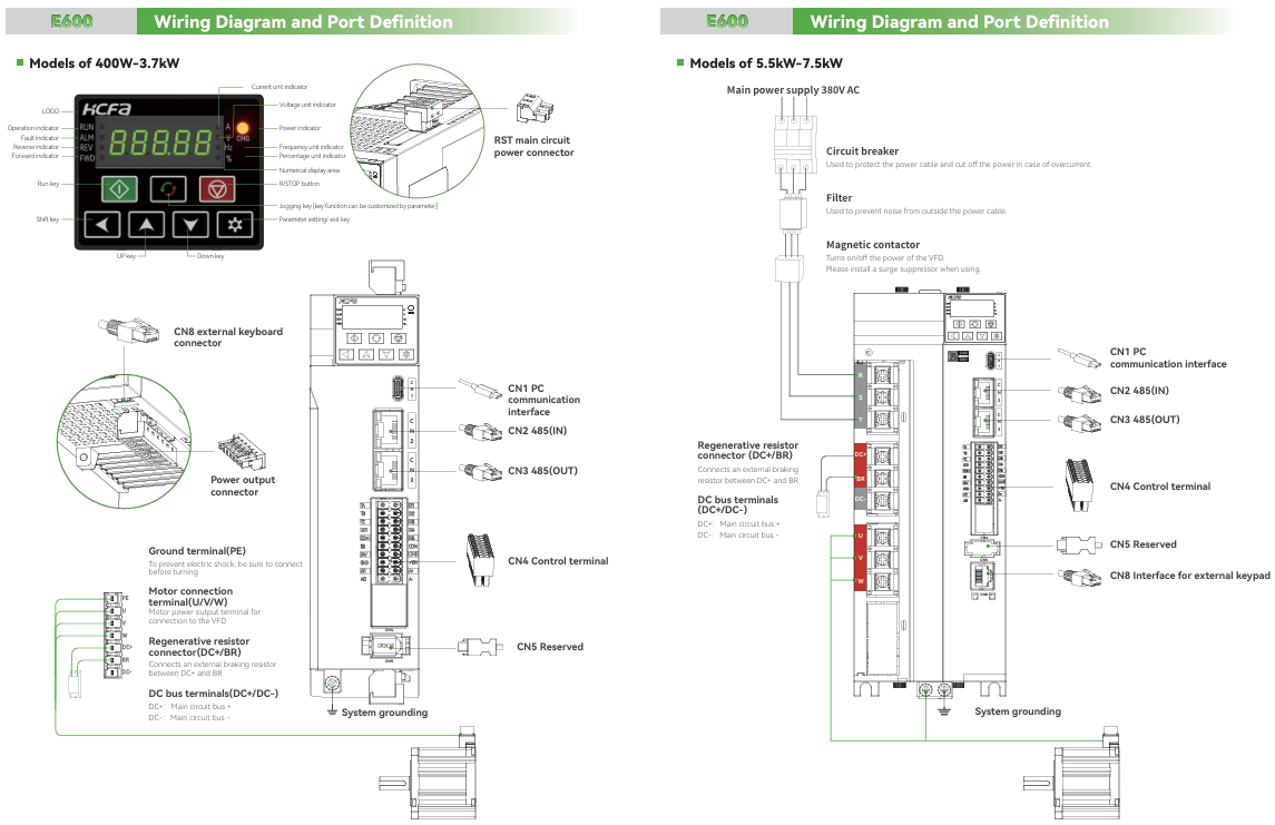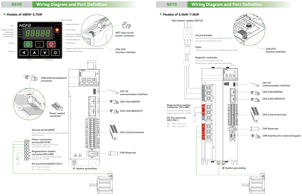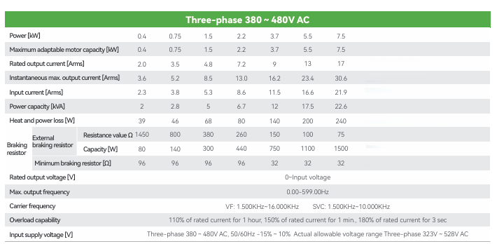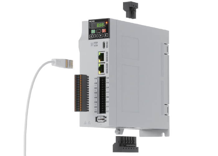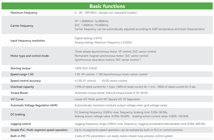 Communication Bus : Modbus RTU、CANopen、Modbus-TCP Hardware interface: 5-way DI (Digital Input), including 1 high-speed input (100kHz), 2-way DO (Digital Output), each supporting 0–24 VDC / 0–50 mA, 2-way AI (Analog Input) : AI1 (0–10 V), AI2 (0–10 V / 4–20 mA), 1-way HDI (Highspeed Digital Input) : supporting 100 kHz pulse, 1-way AO (Analog Output) : AO1 (0–20 mA), AOU (0–10 V)